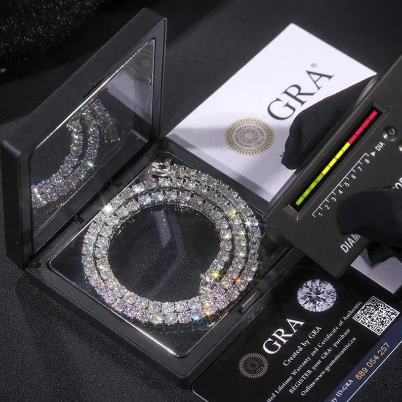 SMON01 Premium Iced Hip Hop Moissanite Necklace 925 Sterling Silver Iced Cut 3mm Moissanite Tennis Chain Necklace in Stock