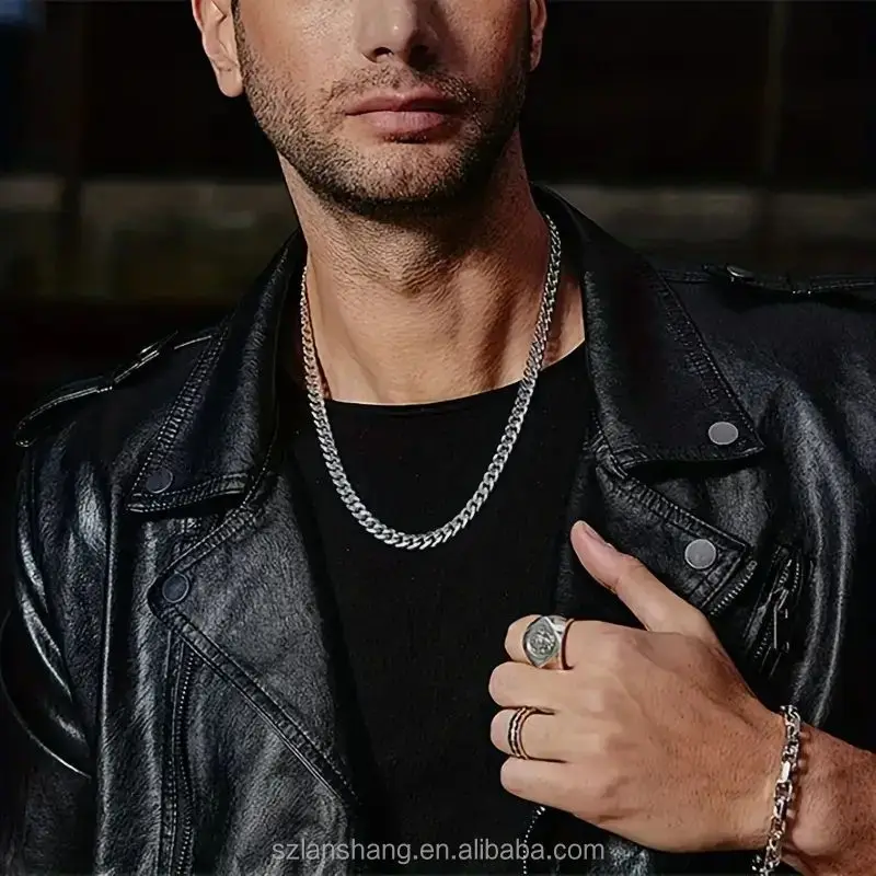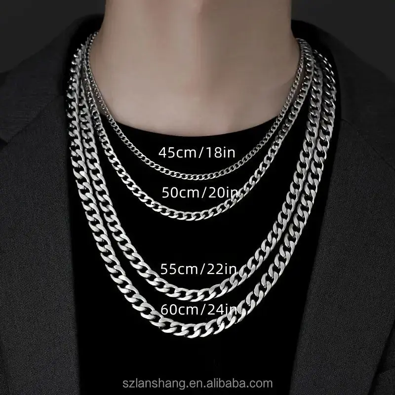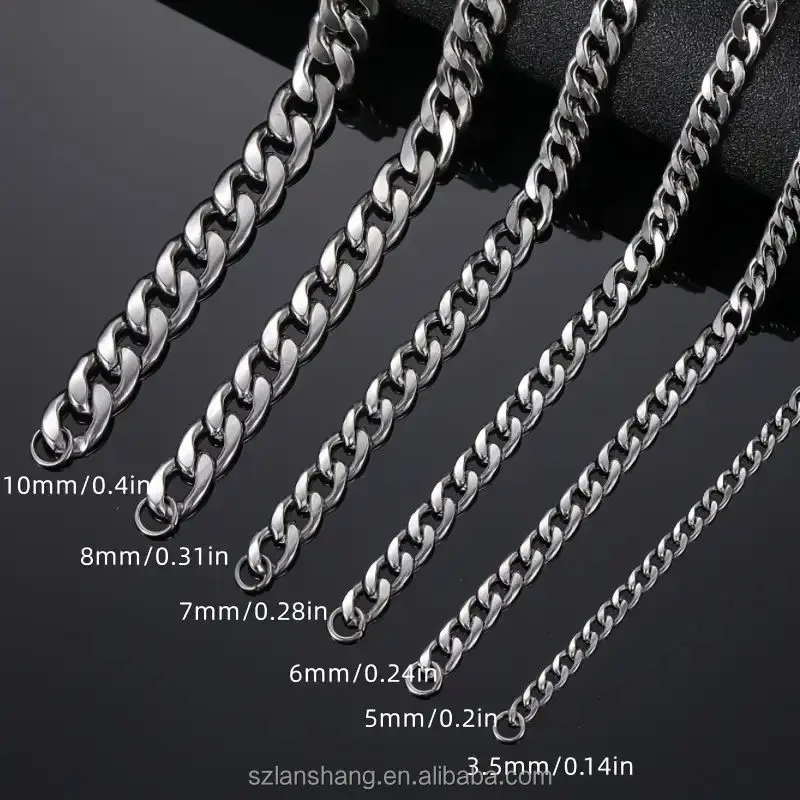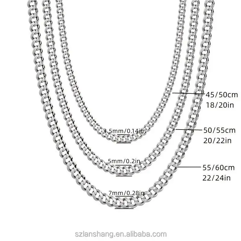3pcs Men's Cuban Link Chain Set 3.5/ 5/7mm Fashion Chains Necklaces Stainless Steel Hip Hop Punk Jewelry for Men