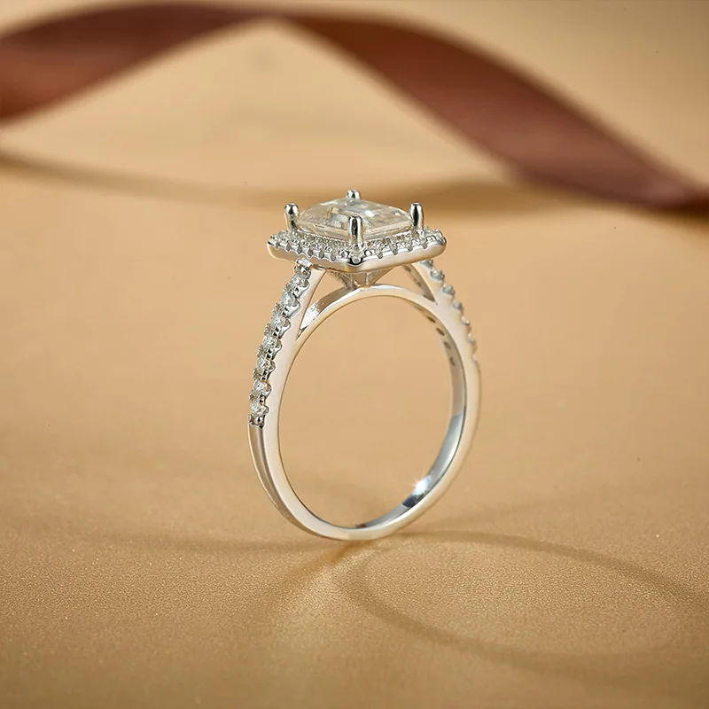 New Arrival 2Carat Halo Emerald Cut Moissanite 925 Sterling Silver Ring for Women Moissanite Wedding Ring Girl |
