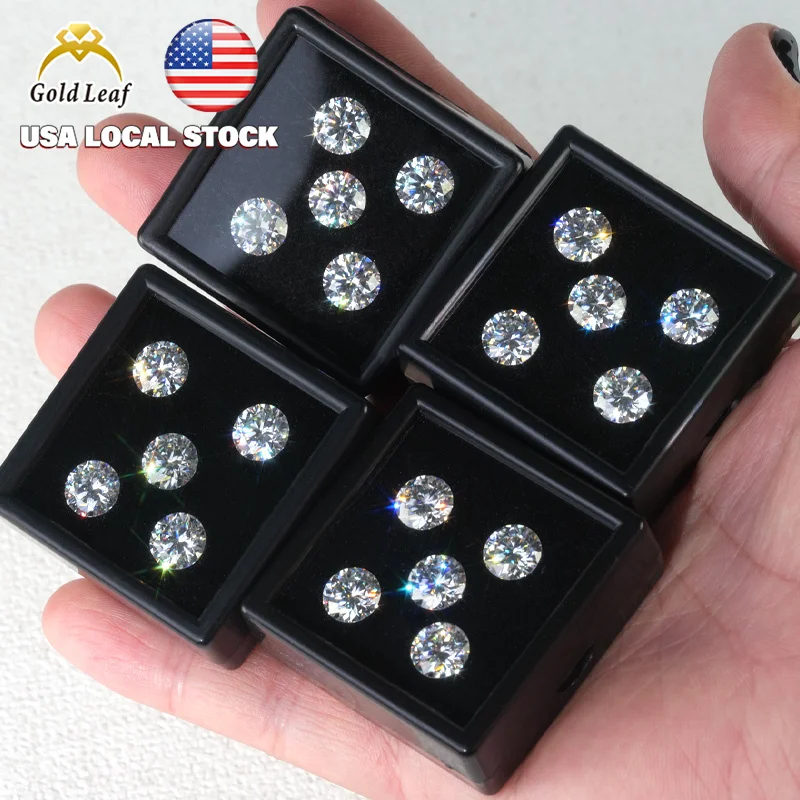 Goldleaf USA Local Stock GRA Moissanite Loose Gems G-VVS1 Round Brilliant Cut 5PC/Box Moissanite for Jewelry Making