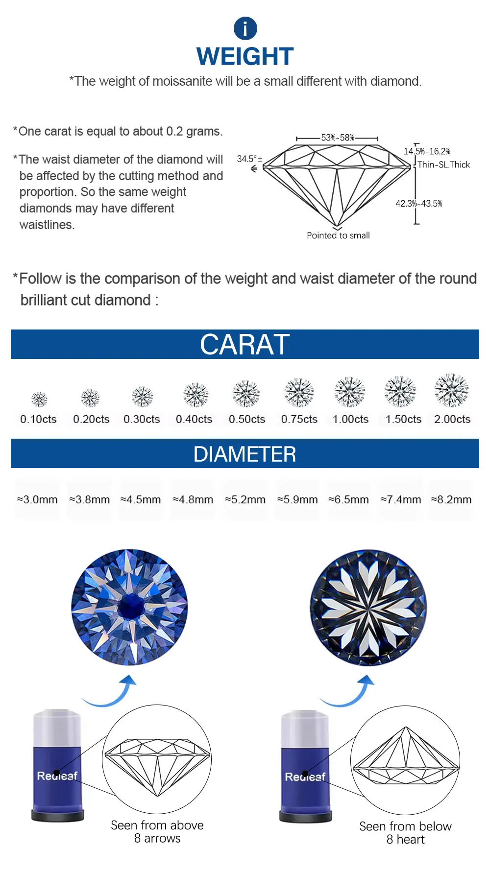 Goldleaf USA Local Stock GRA Moissanite Loose Gems G-VVS1 Round Brilliant Cut 5PC/Box Moissanite for Jewelry Making |