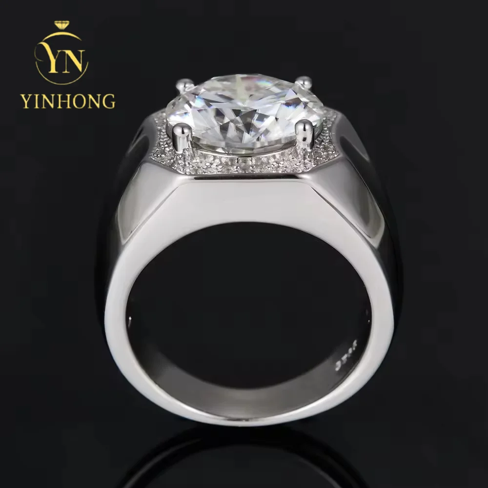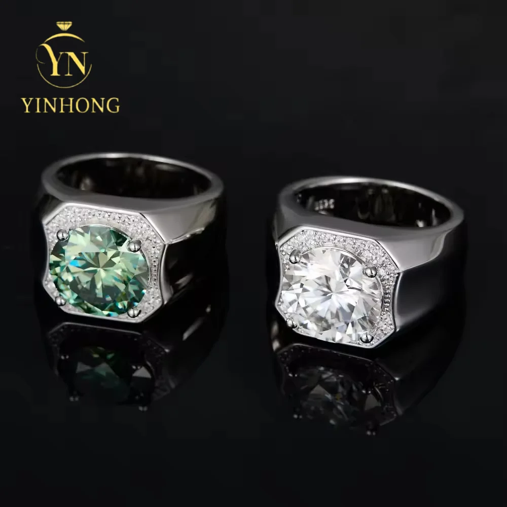 Men's Moissanite Ring S925 Silver Personalized Men's Ring Accessory, White and Green Moissanite Silver Ring
